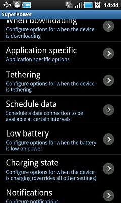 SuperPower (Android) is an application that attempts to save battery power by controlling various power hungry components and features of the device. Its features include managment of the cellular data connection, Wi-Fi, Bluetooth, CPU speed and 2G/3G band. It does all this automagically based on the options you configure.